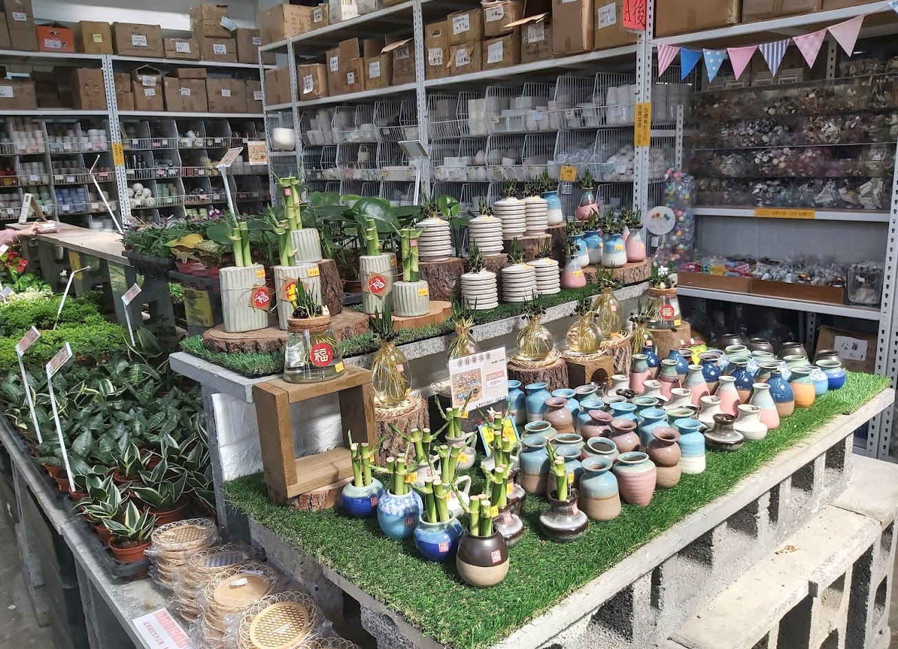 盆器種類非常豐富,材質也多樣,應該有上百種,有眾多盆栽裝飾小物可以挑選,但價格沒有很平價,店內有廁所。