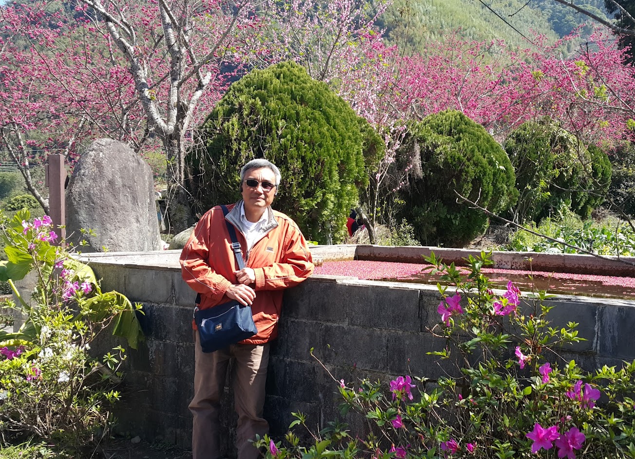 與老婆漫步在塔塔加步道,雖是平常日,但遊客還是很多,櫻花步道花開得熱鬧繽紛,此處多茶園,往上看一片櫻紅,往下看翠綠舖地,美啊!