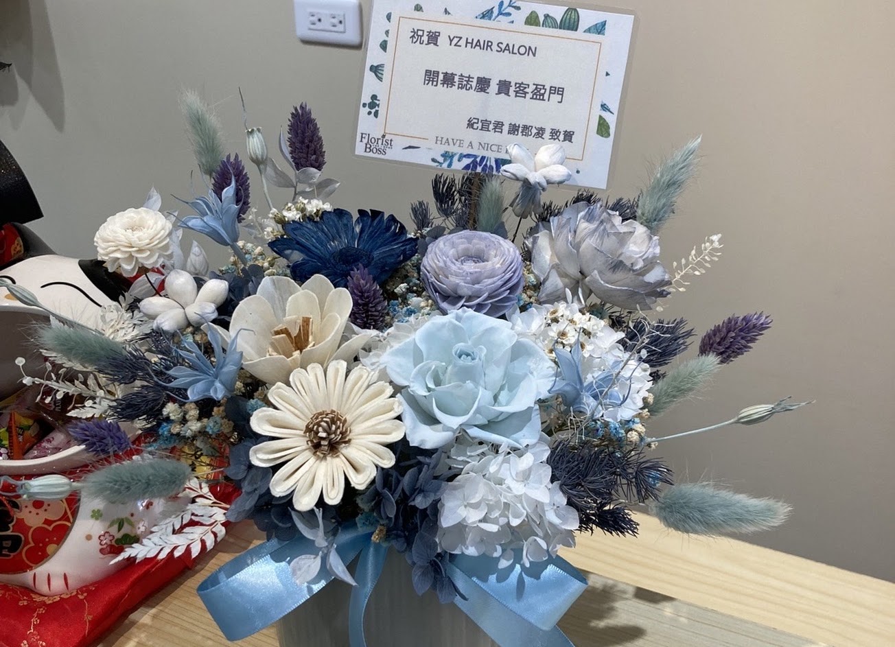 訂了一盆永生花贈給好友新店開幕,大概聊了一下後我就提出要求需要冷色系的,結果出來以後真的另人驚豔,跟我想要的非常相近。