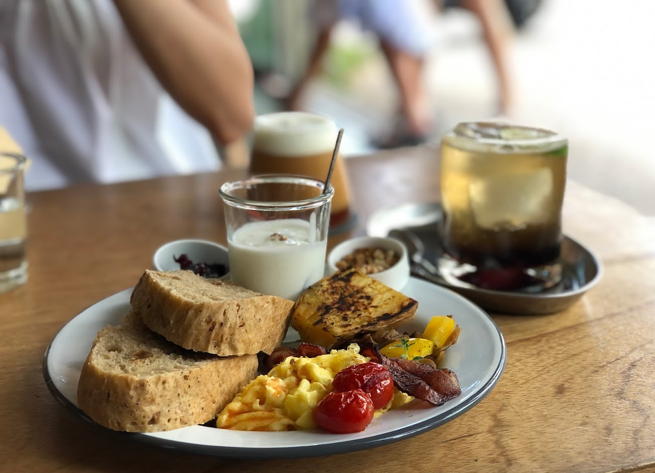 美味的早餐/早午餐,氛圍良好,充滿活力。