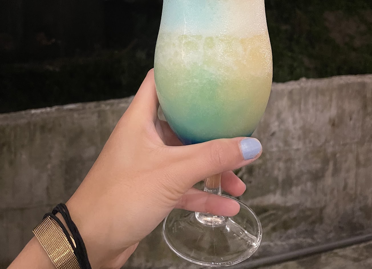 還吃了烤雞翅跟咖喱炸豬排飯,完全高水準欸!因為太餓餐點沒拍好,就看看漂亮的調酒吧!Cheers!