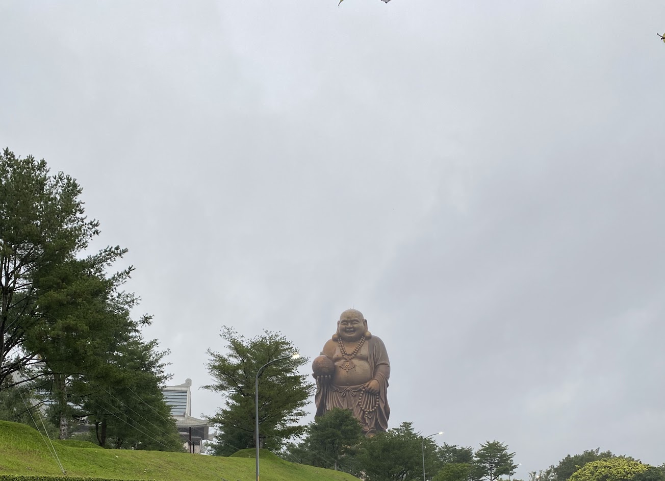 風景優美,空氣清新 但2022/11/26過去時, 1.步道在整修且無任何標示說明 2.部分步道/斜坡為洗石材質,很濕滑 3.彌勒佛也在修整中,被鷹架團團包圍