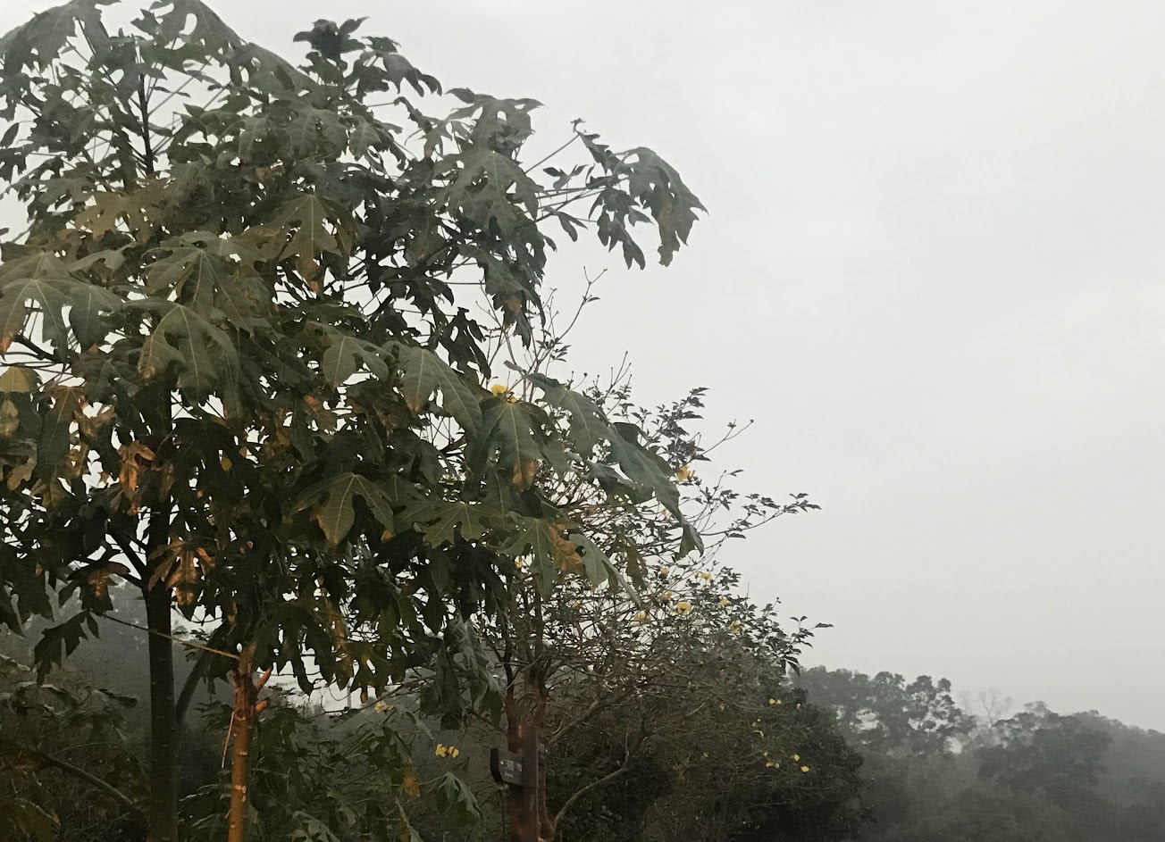 天氣陰,小黑蚊多,落雨松開始轉紅