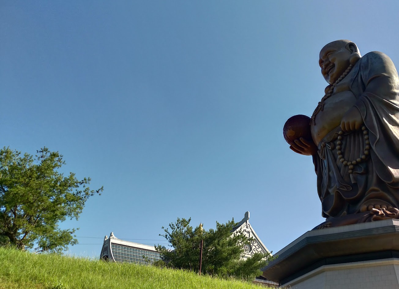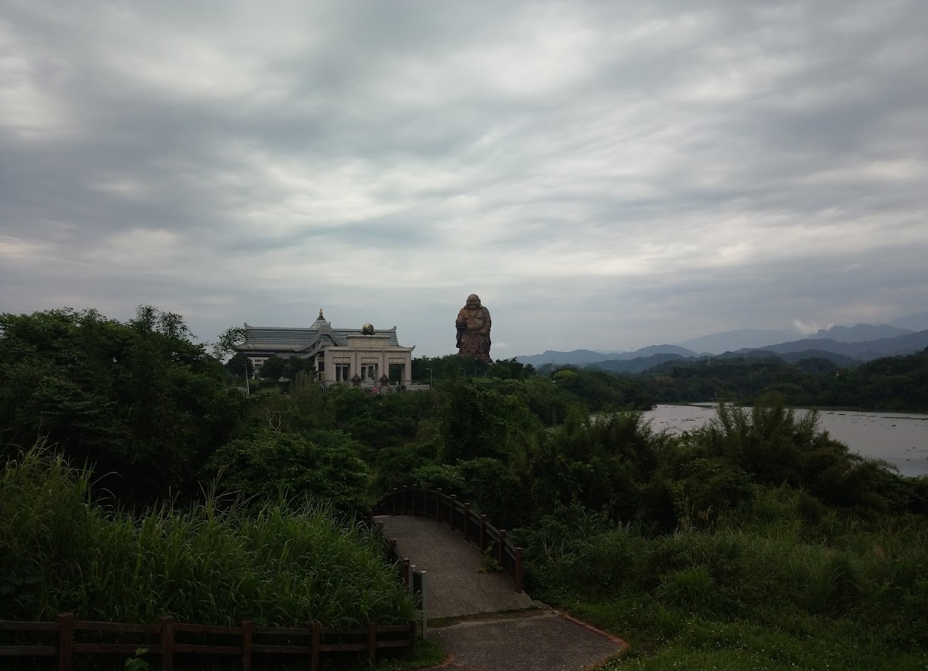第一入口處有停車場, 可以把車停在哪裡。然後 沿著環湖步道, 可以走到彌勒佛大自然館。? 沿途可以 遠望大大的 彌勒佛, 可以欣賞到湖光山色, 還有幾顆落羽松 可以拍照。人很少,沒有人剛跟你搶拍哦! …