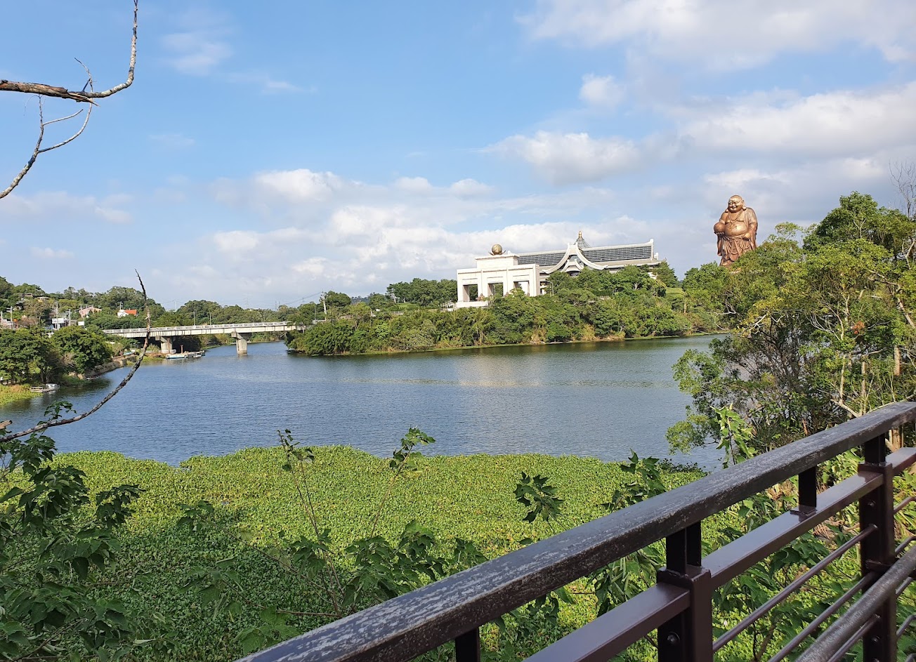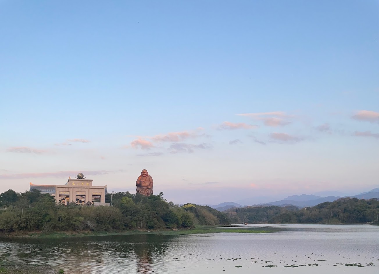 要導航峨眉湖停車場才找得到其中一個入口的位置(共有三個入口),環境舒適,沿著步道散步還能邊觀賞十分具有威嚴的彌勒佛。路上能看到不少父母帶著孩子及寵物來這裡散步,但可惜最近因為施工關係僅剩一小段路可走,適合過一陣子再來拜訪。
