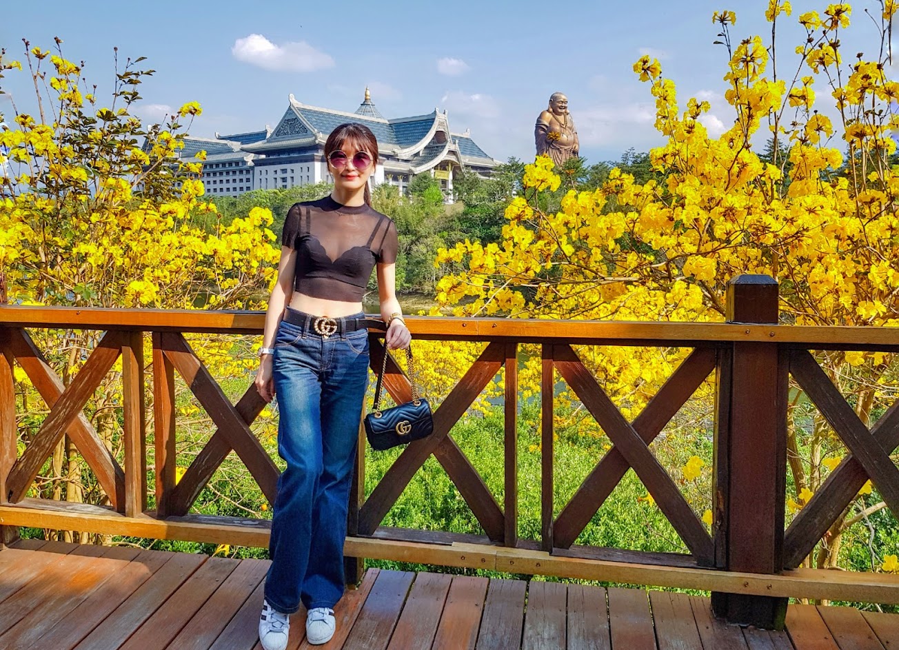 湖畔美景~黃花風鈴木季節限定 增色不少