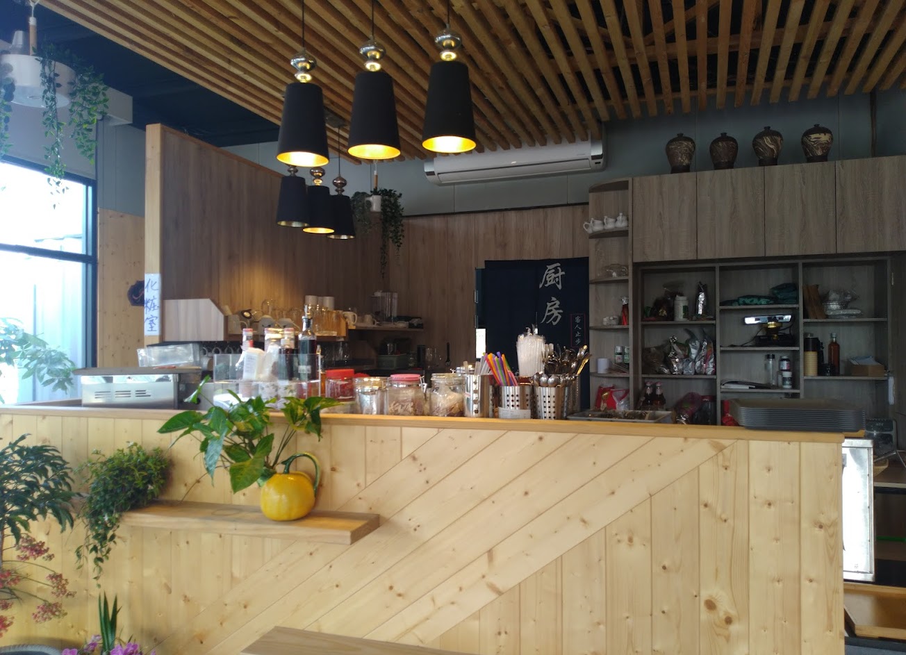 輕鬆,悠閒,室內空間寬闊,桌與桌不擁擠,柴燒好吃