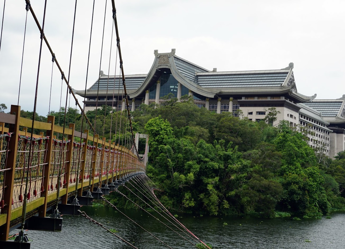 過了吊橋,是大自然佛園區,建議花一二小時到內部參觀,有許多華僑或東南亞華人或東南亞人士,來園區當志工,用國語解說,基本上這是一貫道的道場,但是他們並不特別強調教義或宗教儀式,而是當做文化看待,在裡面可以見到宏偉建築,及開開自己的眼界,至於要不要樂捐捐款,完全不勉強,完全隨喜,不會勸募,值得放鬆去欣賞