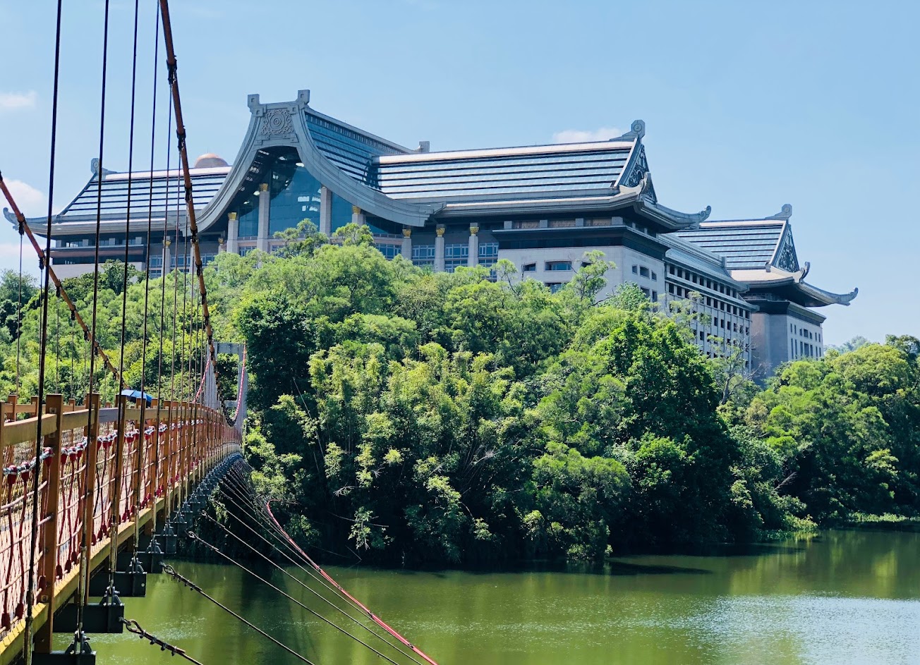 座落在峨嵋湖畔,湖畔有一座富麗堂皇宗教建築,可以秒殺不少底片,橋頭也有一家咖啡美食。