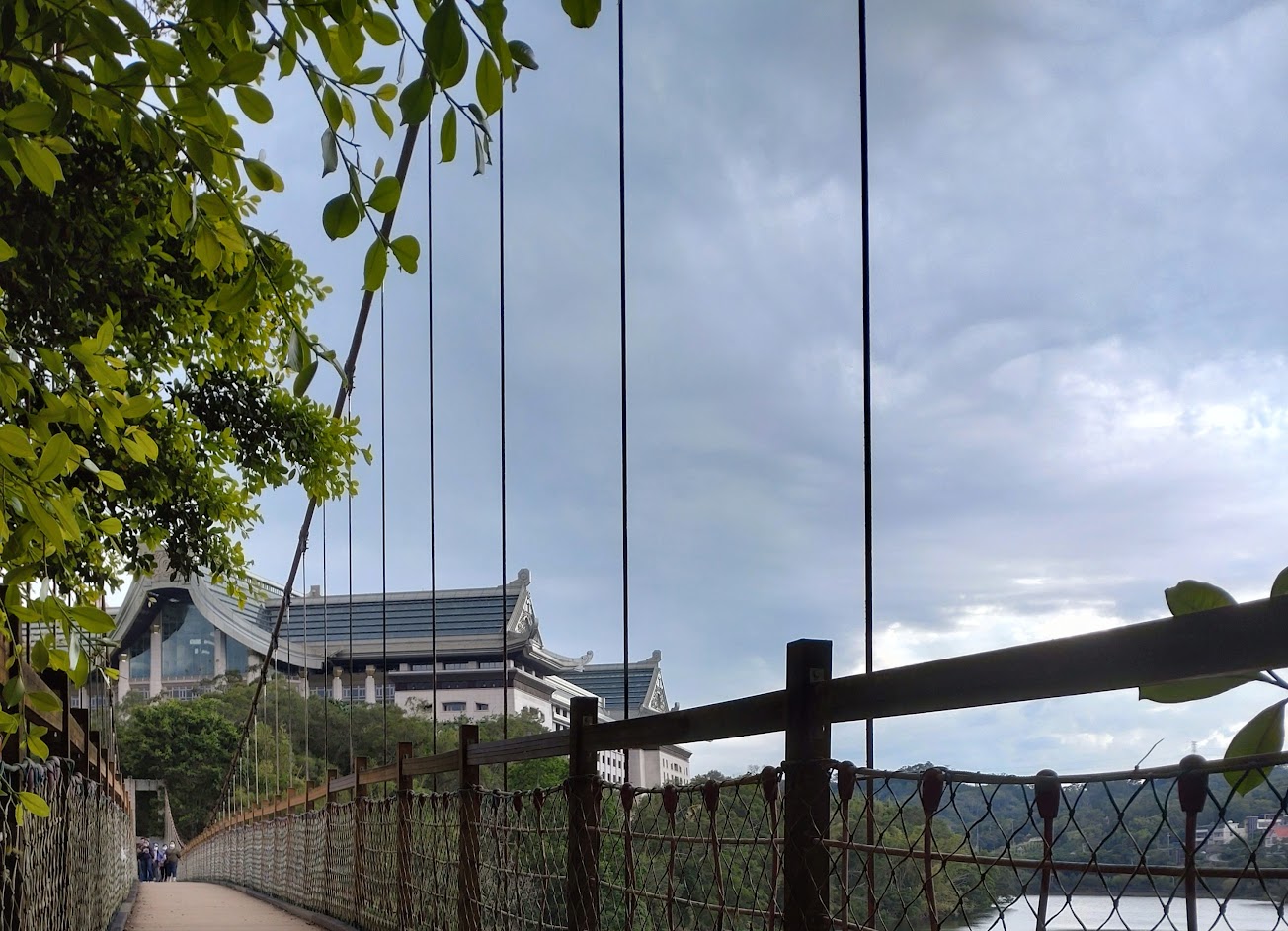 走在吊橋上欣賞著風景