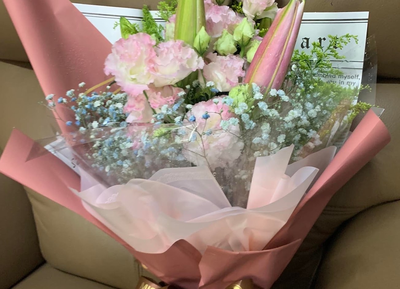 打電話跟老闆娘說了我大概預算,請她幫我配一束粉色系的花束?