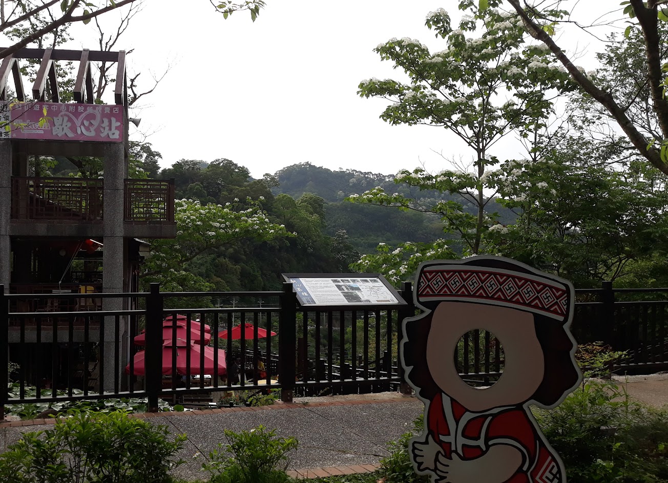 停車場方便,洗手間乾淨。服務人員很貼心、親切。賞桐佳處,可惜大雨影響走步道興致。