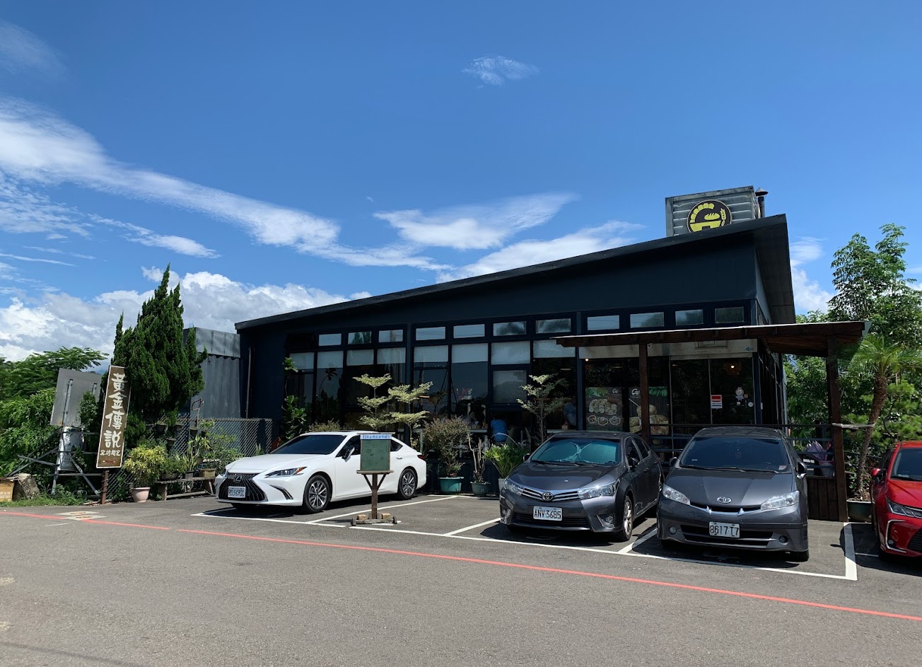 ?店門前畫有停車格可就近停車,就連餐廳對面也有大片專屬停車場。