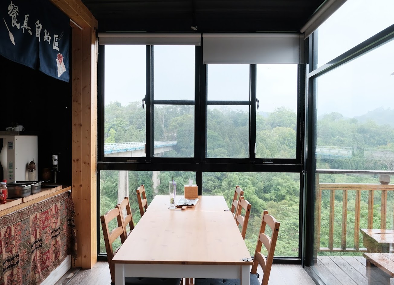 好停車,店家很乾淨,應該算是工業風結合木作的裝潢,大片玻璃牆及窗戶,開放明亮。
