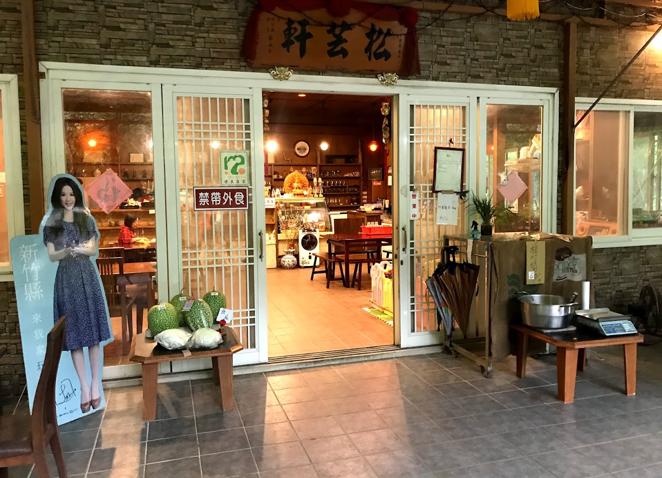 藏身在十二寮的松芸軒,坐擁自然山林,山莊古樸雅致,店東為分享峨眉遠離塵囂的靜謐而經營餐飲,在自己的菜園裡種植喝酵素長大的四季時蔬,再把蔬菜上桌成為最新鮮的佳餚。莊內招牌吃法式咖啡配臭豆腐,及販售供應客家簡餐、茶飲與手作釀漬及手做米苔目。