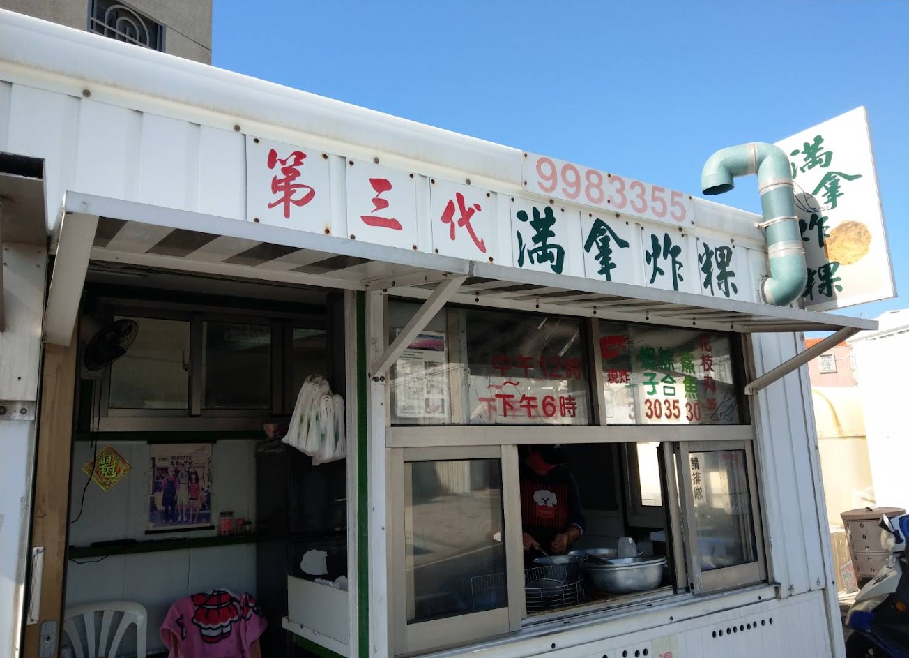 路邊如車亭的小巧店家,只有炸粿,香腸,花枝丸,炸粿裡放了蝦子跟魚肉,簡單好吃的海鮮甜味。