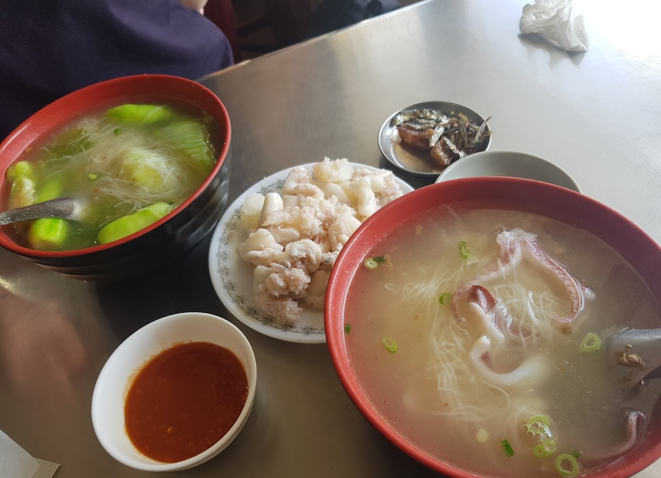 抵達第一天就去吃小管麵線,還好沒什麼人不用等。第三天又懷念了想再去吃就大排長龍…然後想說那就吃別間看看吧!吃起來應該差不多吧?結果顯示還是小萍好吃? 雖然第三天沒吃到小萍,但還是買了三罐小魚乾撫慰一下玻璃心? …