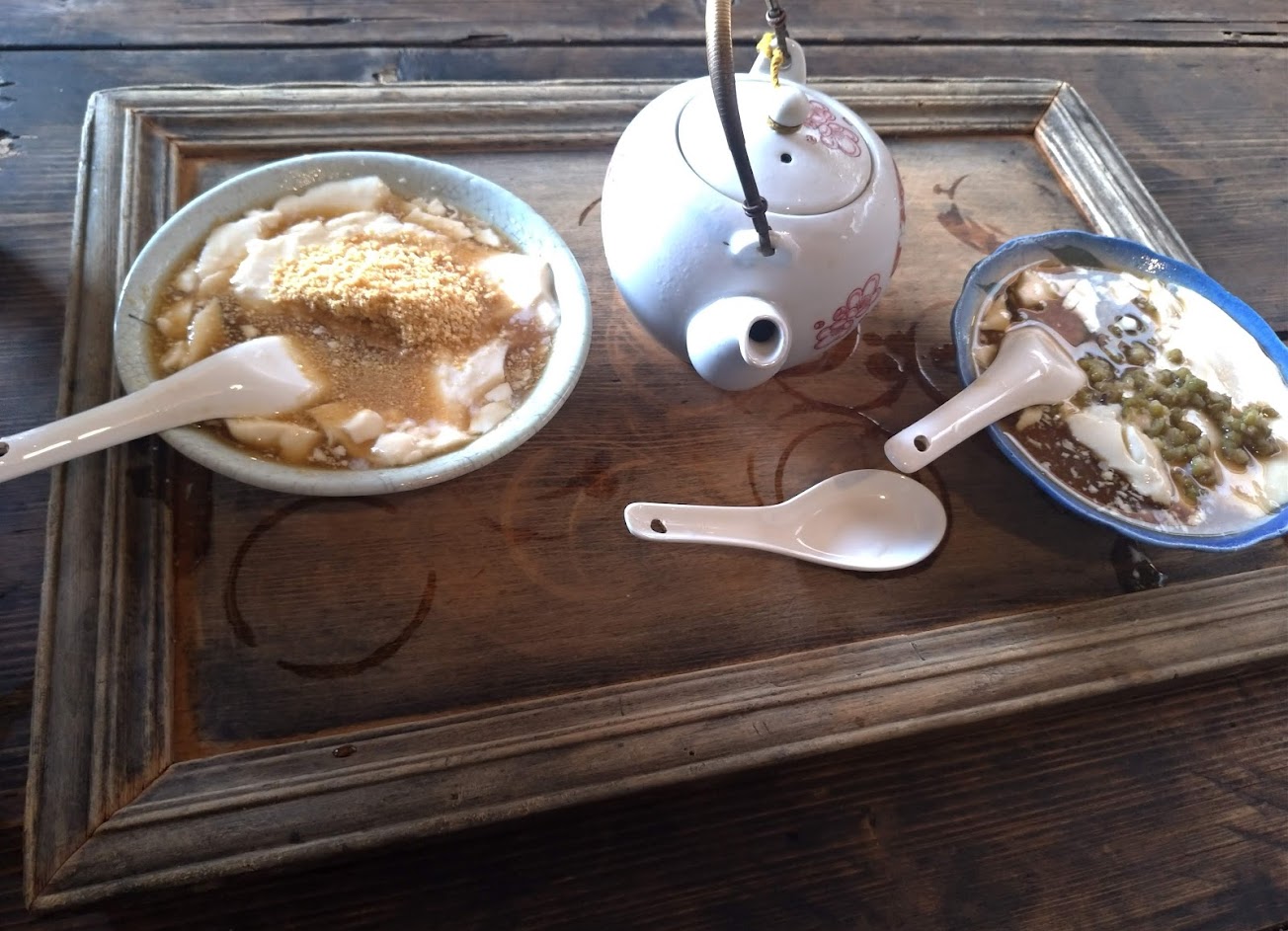 古早味豆花, 很濃郁可口, 坐在老宅中, 品嚐花生粉的豆花, 好吃?