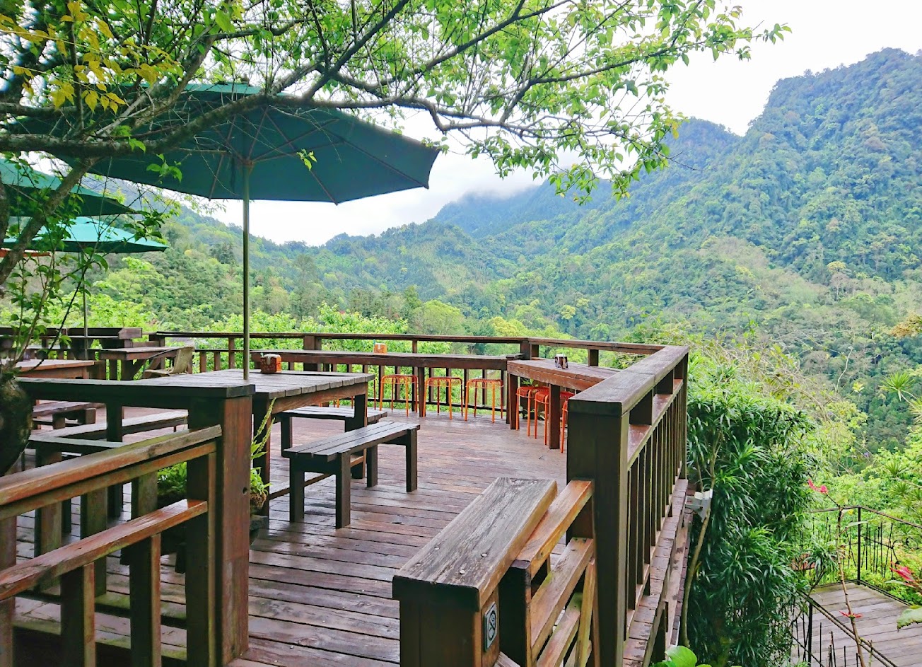 放鬆舒服、很多座位種植許多觀賞植物,可遠眺山景度過悠閒時光,門票$200可抵消費,也有住宿