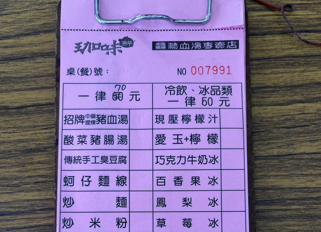 每次回來都必吃 從當初在勸化堂樓下到後來搬到南莊我們還是每年回來都一定來吃 不過今年來已經漲到每樣70元 好在是口味一樣 只是回程我回想才發現被多140元 我們三個人點3碗豬血湯加一份坷仔煎 一份臭豆腐 然後我又加點2份豬血湯外帶拿500老闆還跟我說630 九份