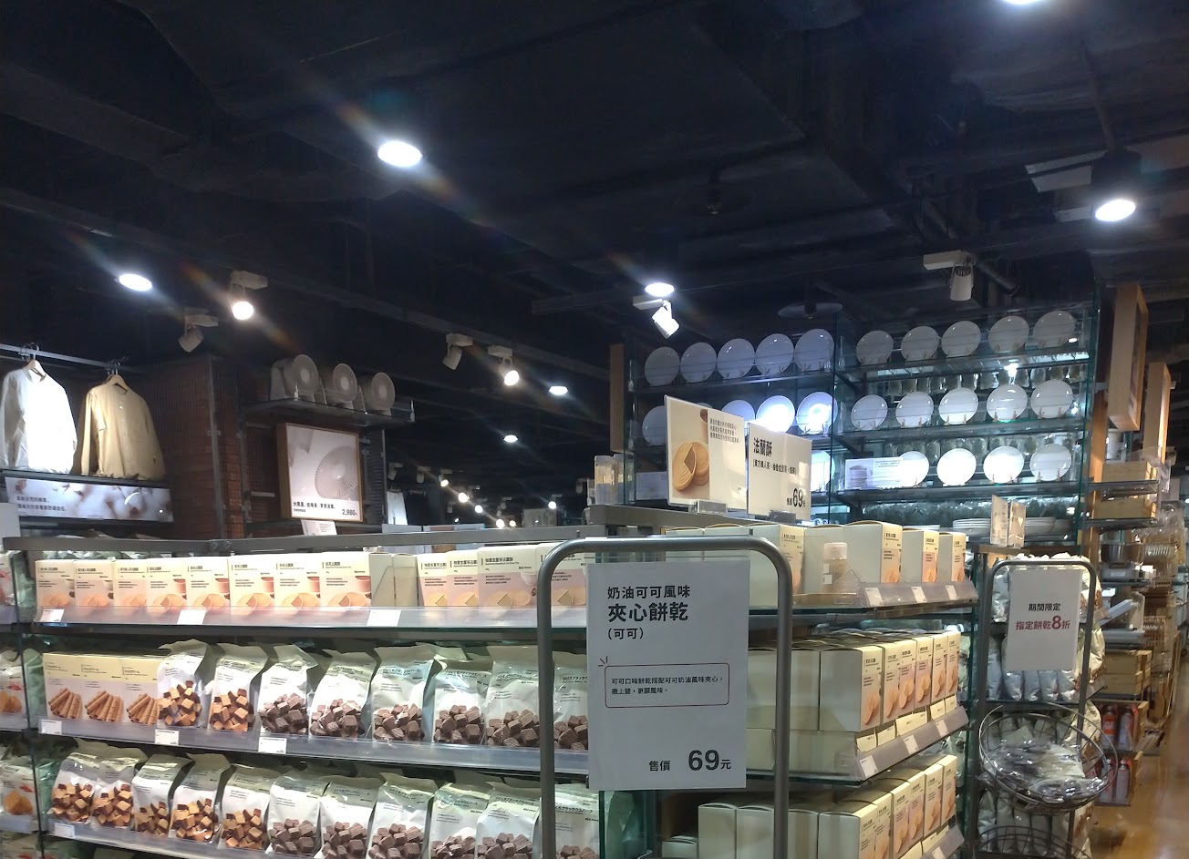 這家無印良品經歷了許多實驗商業風格的新嘗試。這是第一家提供食物的無印良品(現在不再是了)。我猜是在 Uni-Muji 合作的鼎盛時期,他們更願意嘗試不同的可能性。但現在它只是一個普通的無印良品,位於台北最繁忙的地鐵站之一旁邊,但它很好地達到了它的目的。