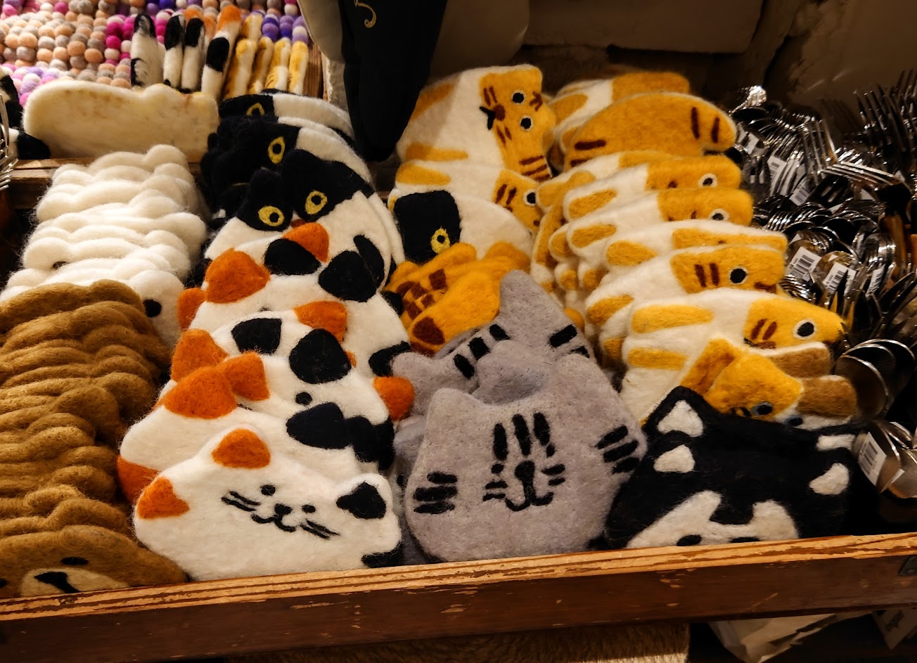 裡面商品除了日式風格的杯子和碗盤,還有很多貓咪的小東西,我買了一個羊毛刷 70 元,刷毛真的非常柔軟,另外還買了一個手工三花貓羊毛氈杯墊 180 元,但實在太可愛了,買回家後捨不得拿來墊杯子,就拿來當擺飾囉!???