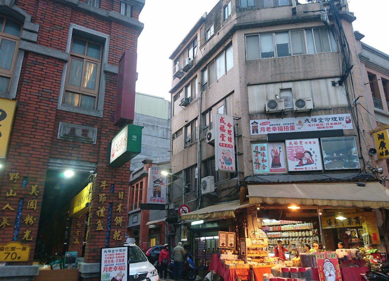 永樂市場北部台灣早期服飾業相關材料布批發訂做的老地方,也是過農曆年前的年貨大街,旁邊有霞海程皇廟可求姻緣