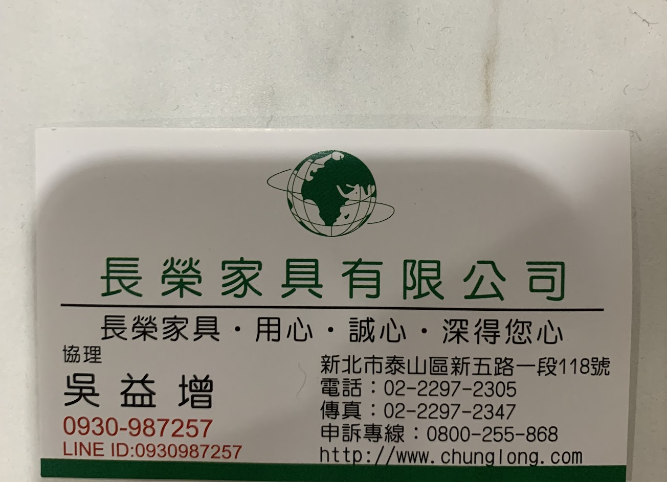 在這裡買了沙發跟衣櫃,很謝謝瞿建蘭副理的說明跟介紹,還有教我們衣櫃怎麼挑比較好,價錢公道,送貨的人員也很不錯,交貨當天有個插曲,衣櫃的玻璃有幾處污漬是在裡面,工廠製作時產生的,跟瞿副理反應後也很快的聯絡工廠幫我們換新的,對於售後服務這部分覺得很不錯,如果到長榮購買傢俱非常推薦找瞿副理詢問