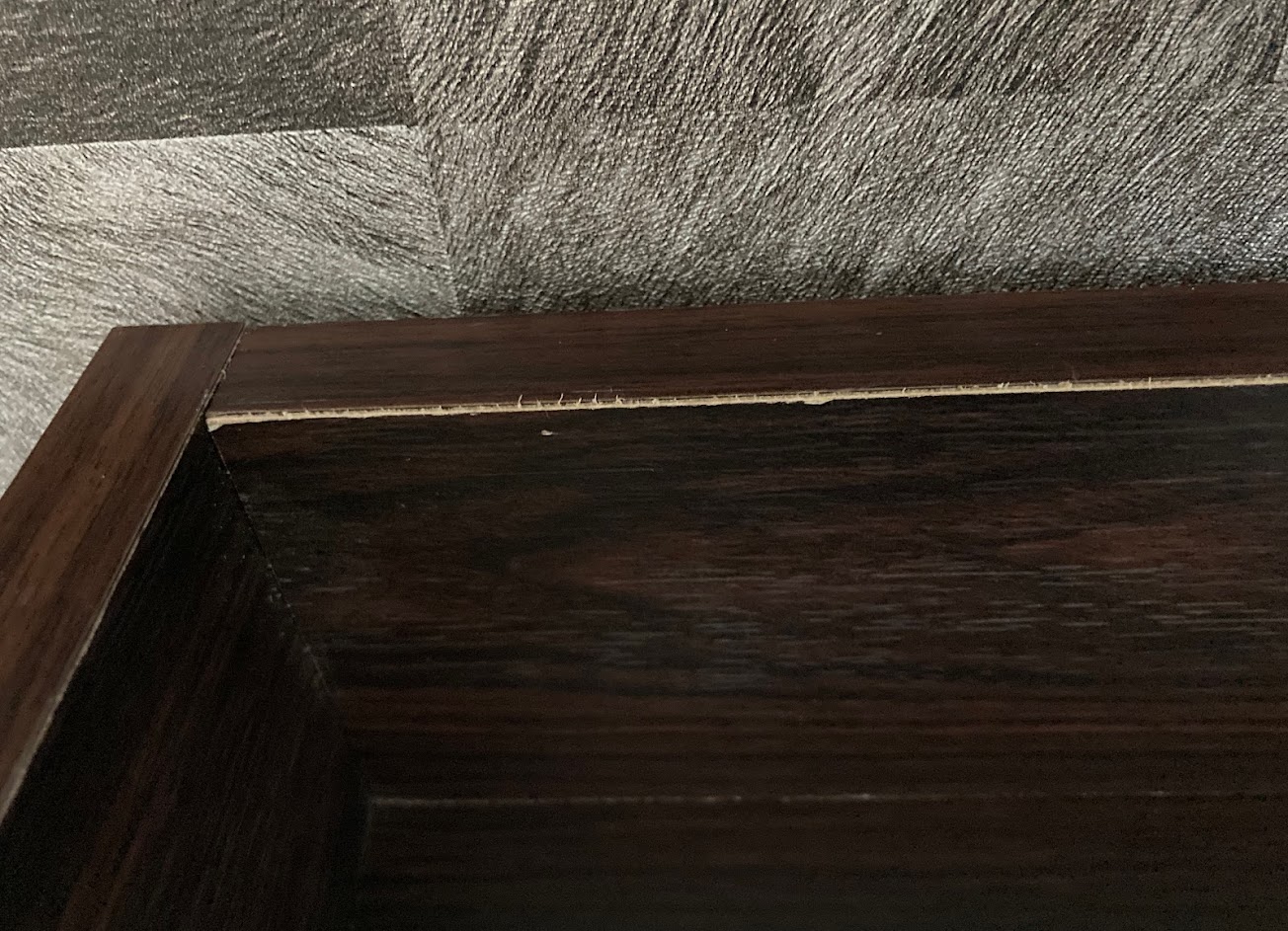 床頭板做工略為粗糙,貼皮沒貼好。