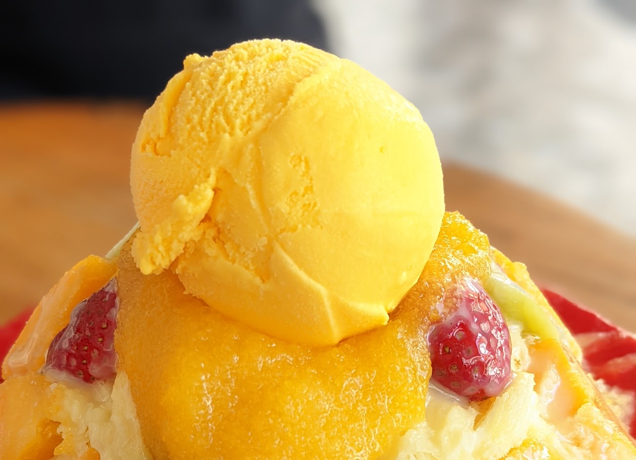 上面的冰淇淋球可以選擇芒果或草莓口味