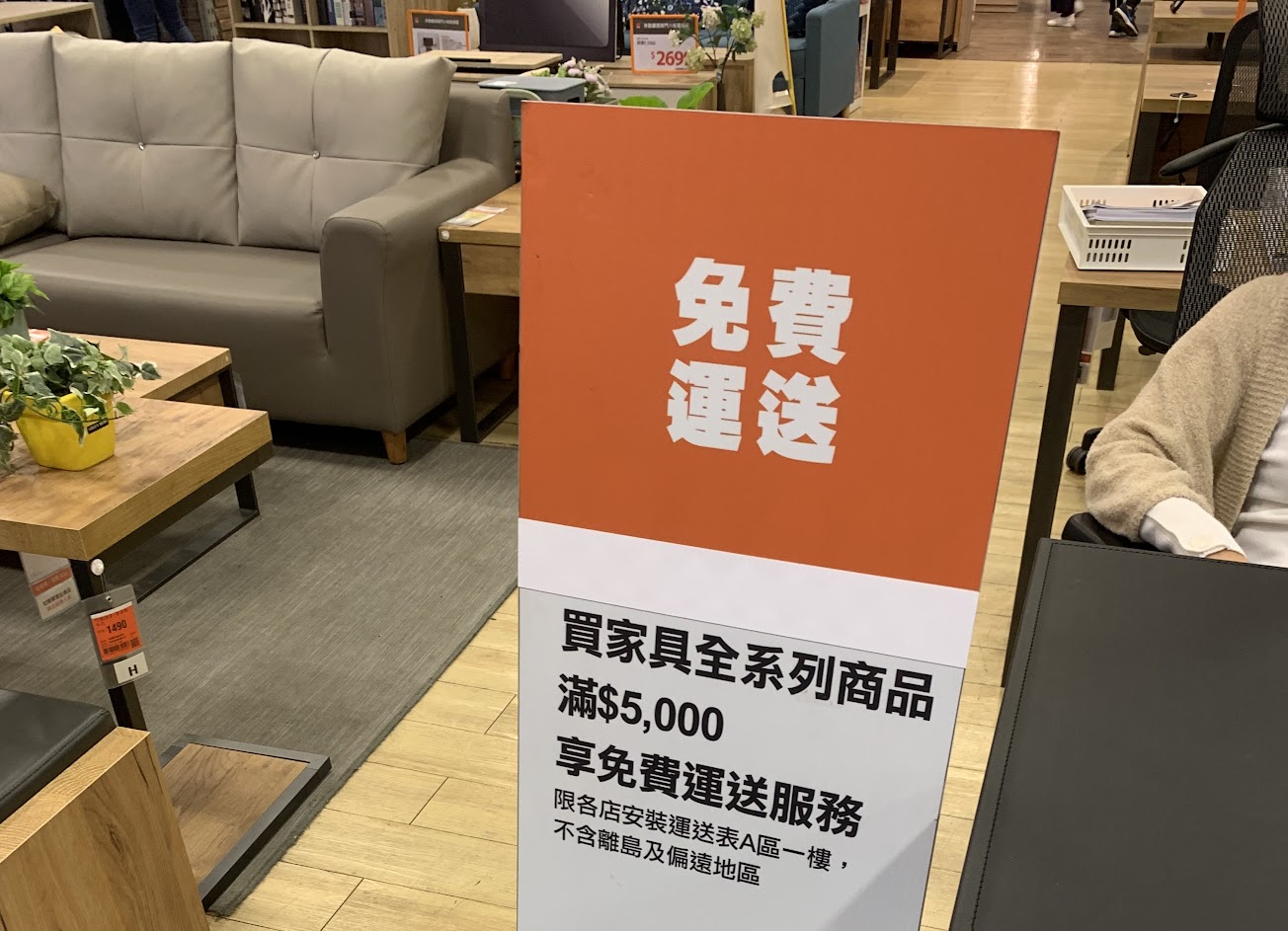 來買電腦桌、椅,其他開學用品,服務人員真的要加強,入口牌明明寫滿5000元免運,還在說是上次活動,暈倒在地!⋯結帳 那位領生日禮物的排另一排在後面,卻先幫他處理,算了!⋯