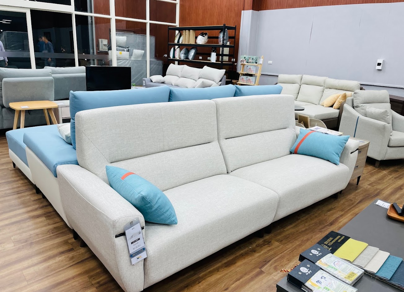 現場有多款樣式沙發,都台灣製的,也可以客製化
