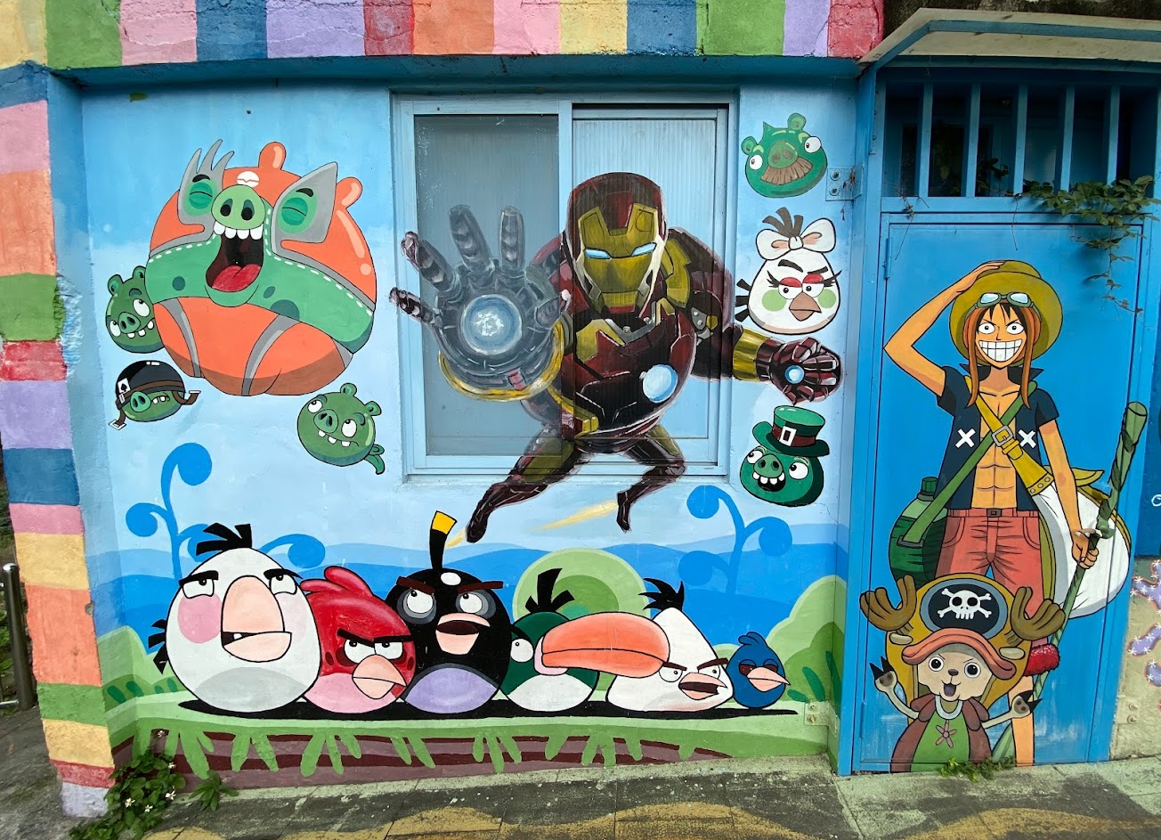 短短的卡通彩繪巷,但畫的很好,附近有仙草店可以吃。