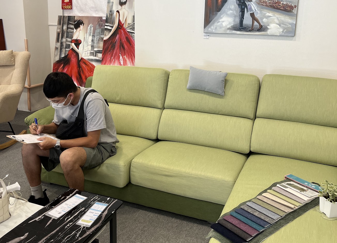 坐又銘館內很寬敞明亮,每一張沙發款看起來都很有質感,還能依照家裡的空間大小尺寸客製化,挑選自己喜歡的布料材質。
