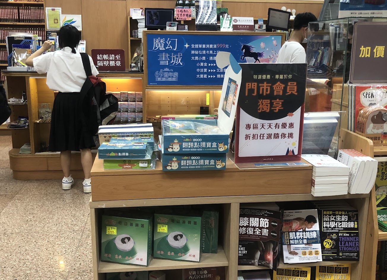 從小時候一直來看童書到現在長大,價錢當然沒有網路優惠(三民自家的)但實體書局有能力當然還是要支持,畢竟可以試閱再買。另外找書的機器一定要等店員來幫忙的設計覺得有點過時。