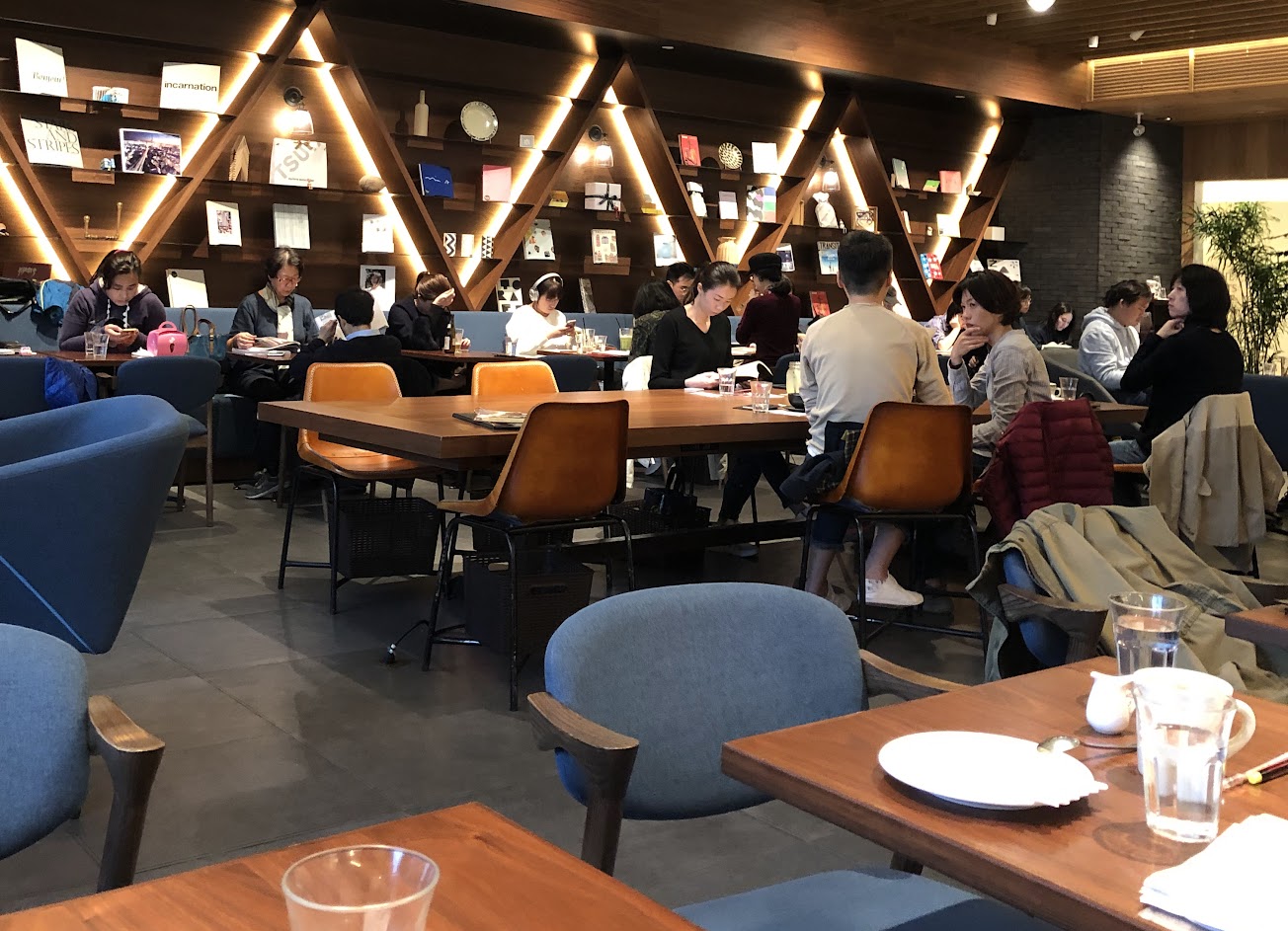 小而美,空間利用佳。目前餐廳不提供訂位,通常要等半小時左右。書籍不算很多,但座位安排佳。