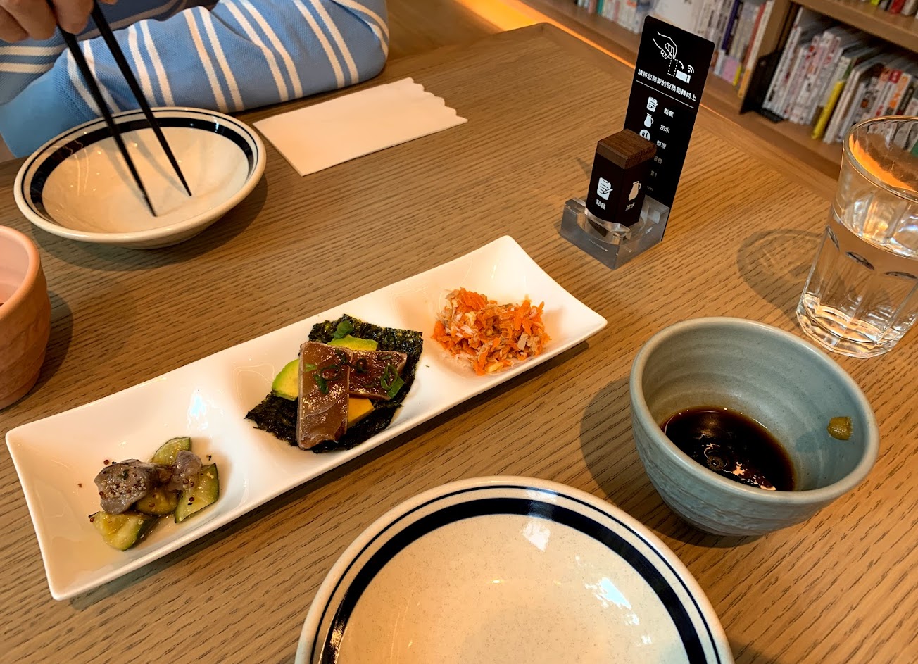 我喜歡讀書,但是鳶鳥書店內其實是茶屋餐廳。書店只是來吸引讀者進來參觀喫茶用餐。用餐也沒什麼選擇,只有兩人一個涮涮鍋可選豬肉或雞肉。我喜歡漬物,天婦羅前菜,以及鍋物後的紅豆湯,煎茶或焙茶。最驚訝的是服務員有華航空服級的質量。我幾乎不用桌前的骰子呼叫用水用餐。兩人用餐含服務費1170元。這是第一家我沒去翻書的書店,讀書人可要大失望了,所以只給四個星。