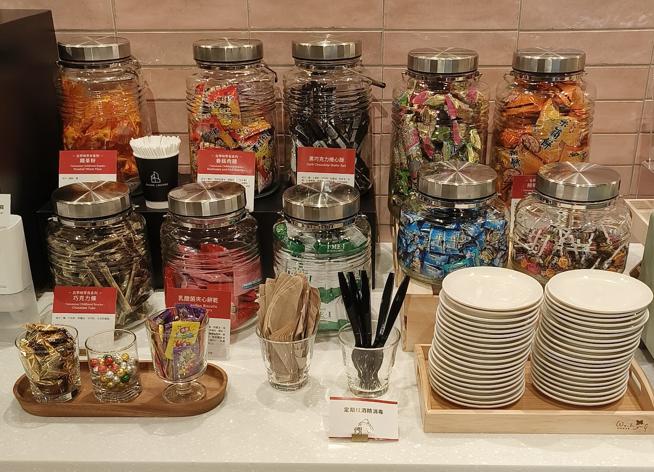 事實上,如果進入SHERE LOUNGE 一走進去就要開始計時計費,在SHERE LOUNGE 裡面是可以邊看書邊無限量的取用咖啡、甜點、麵包、堅果……。