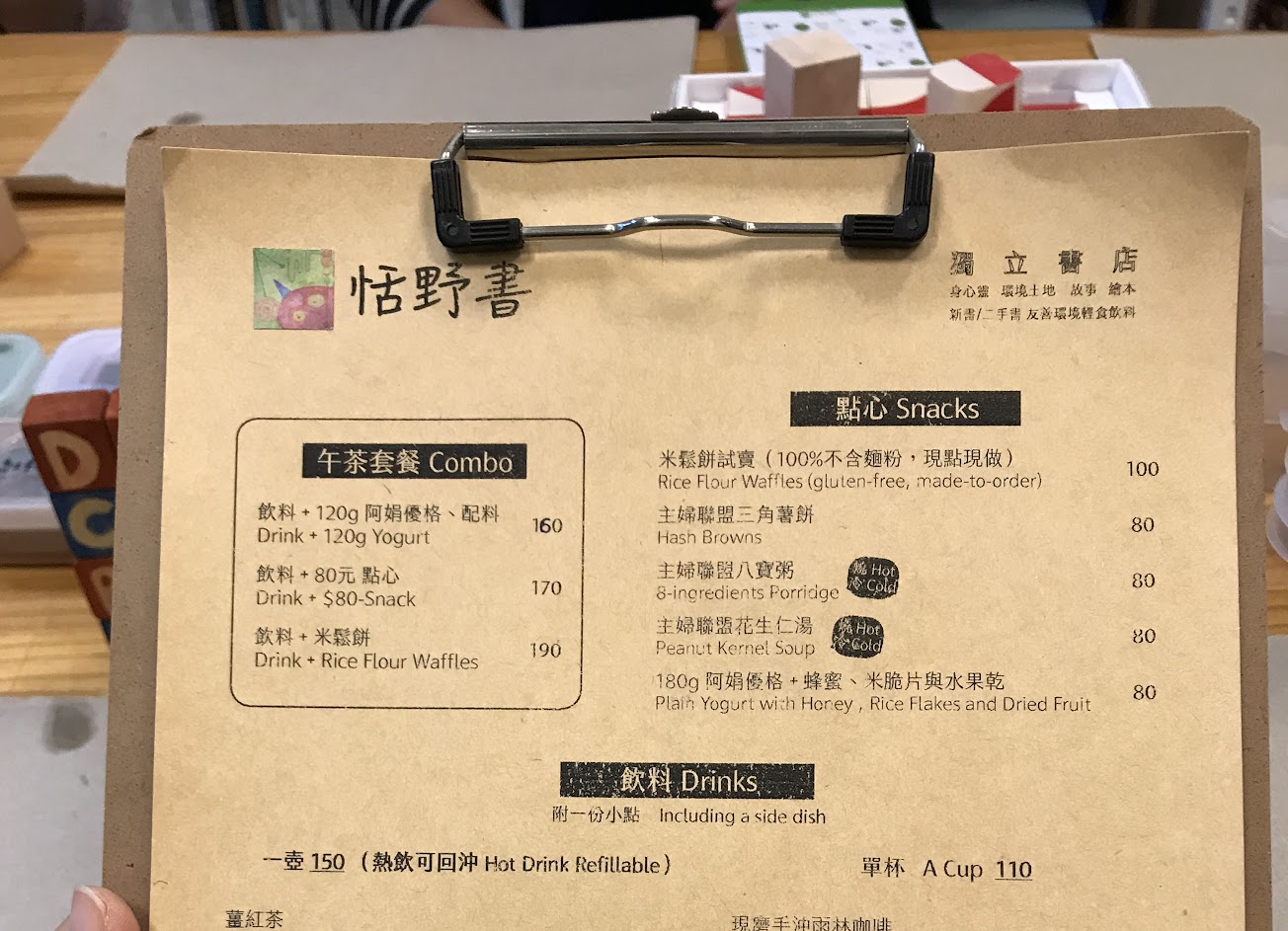 除了書之外,恬野書也提供友善環境與身體的下午茶與用品(目前有不鏽鋼、玻璃與蘆葦吸管、櫻桃蜜貼與糖,來了布衛生棉、黑潮再生紙筆記本),店內的裝潢也嘗試「被動式節能」減少對空調的依賴。