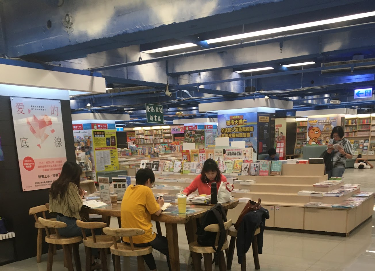 位於地下的書局,樓上則是文具店和星巴克,書局內部明亮整齊,環境佳