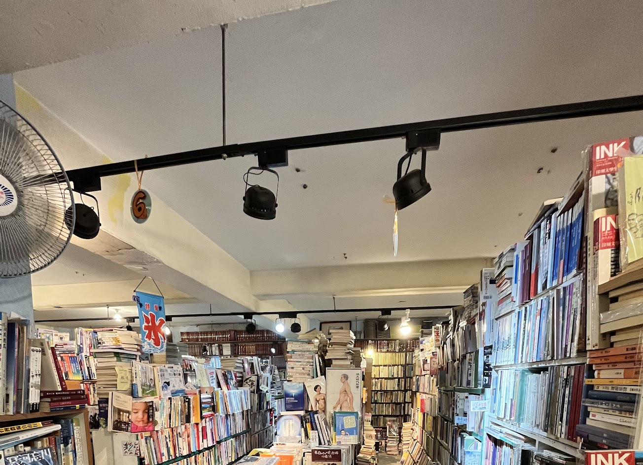 店內沒有冷氣只有幾台掛在牆上的電扇,加上位在地下室的緣故,環境略微悶熱,如果沒有將心情沈靜下來,在書店內無法待太久。 …