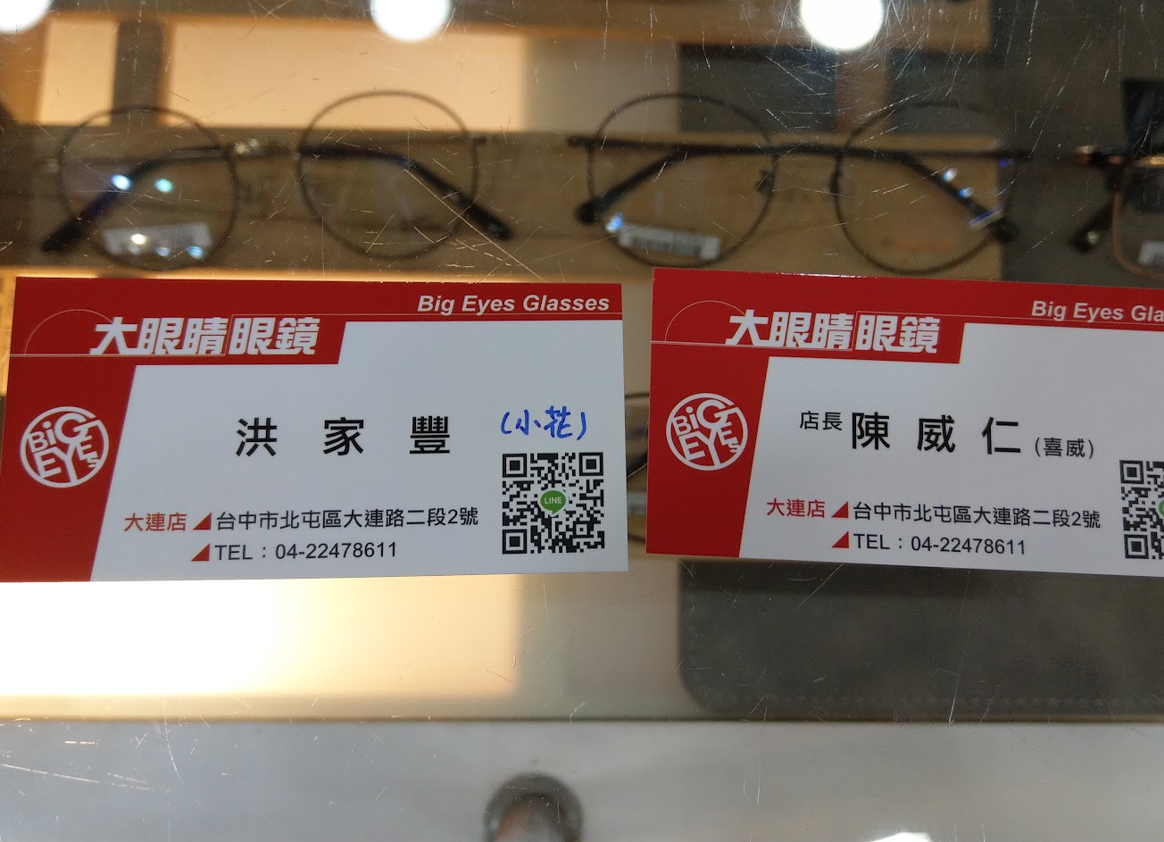 服務親切 店員素質都很好 調整鏡框技術一流 老花問題也都很專業的回答我 眼鏡我只找這間大眼睛