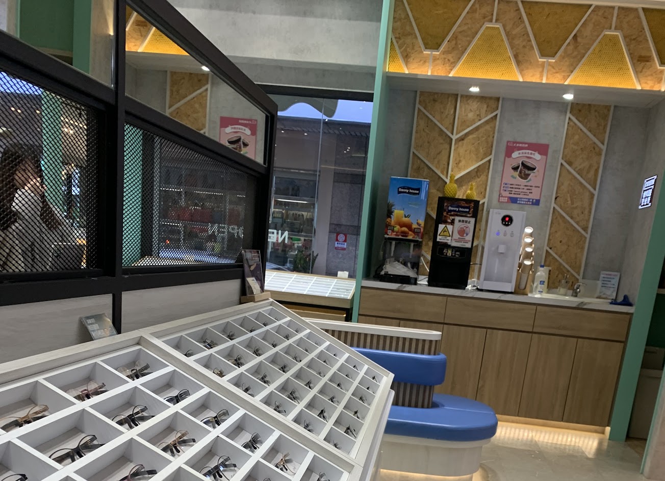 室內空間寬敞,眼鏡款式很多,還有休息區,以及充電usb,供應飲料,非常貼心。