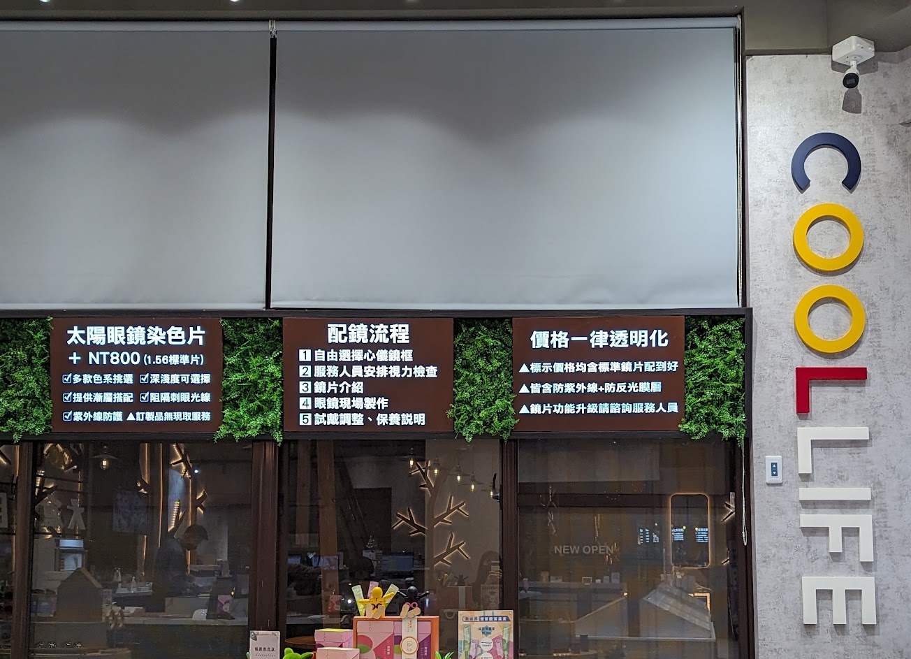 店內擺飾令人眼前一亮且獨具特色,不但服務周到(咖啡、飲料機等),款式選擇更是眾多。是一間會讓人感到好奇,想進來逛逛的眼鏡行。