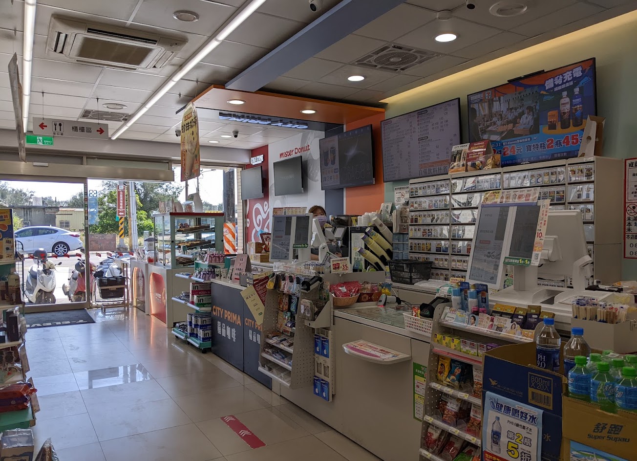 這是一家普通的便利商店,但由於其位置靠近台北和新竹之間的公路,因此也是騎行者的地標。而且還鄰近客家遊憩區的濱海自行車道。所以,尤其是在陽光明媚的週末,周圍有很多騎自行車的人。但地方不大,室內座位區也有限。