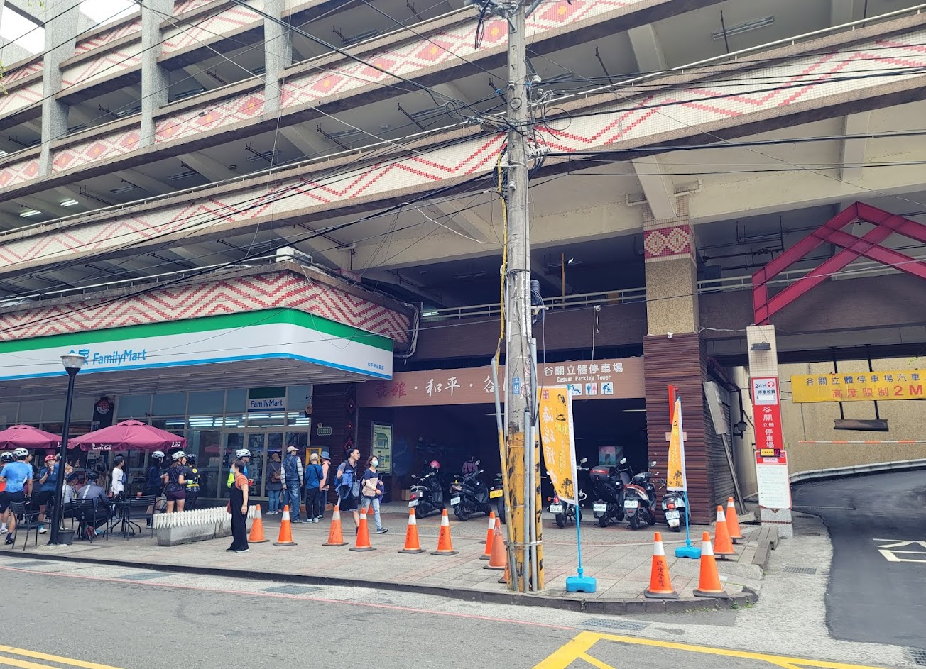 很有原住民特色的全家,一走過還以為是萊爾富或OK便利商店,因為它的玻璃外觀變成紅色原住民logo