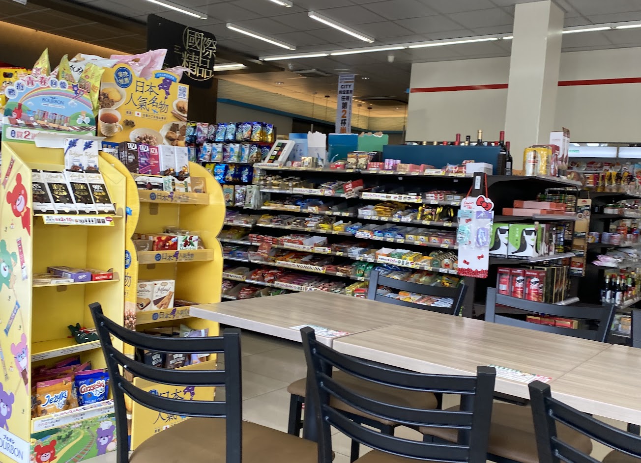 大夜班的胖胖女店員, 戴著口罩 擺個撲克臉, 結帳從頭到尾沒說一個字, 總共多少錢 還要我側身移步 去看收銀機。給客人休息的 桌椅, 全部收好疊起來, 沒得坐。