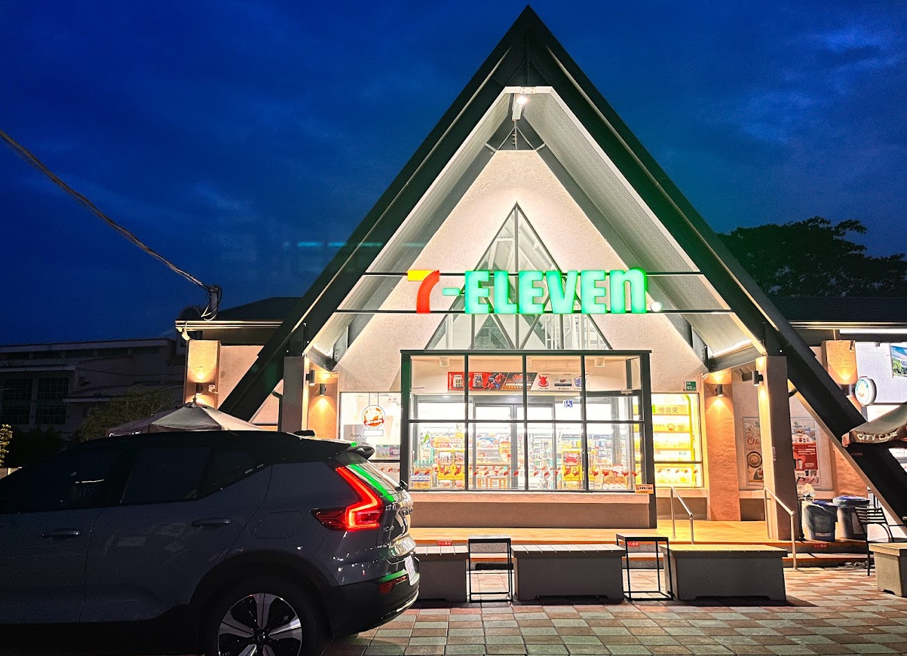 這間7-11外頭設計蠻漂亮的 很像小木屋 裡頭用餐座位區多 廁所也明亮乾淨 …