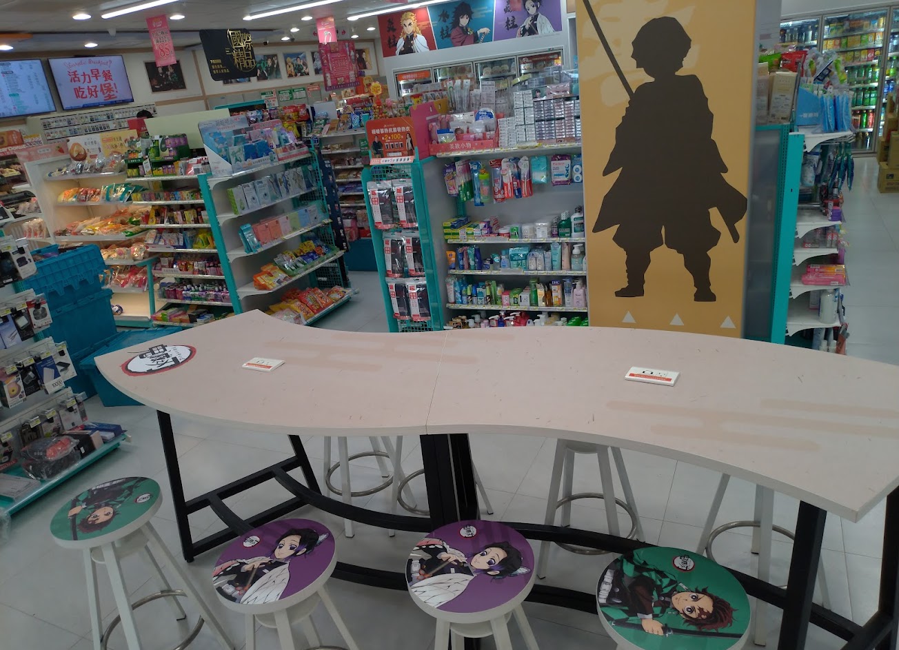 現在這裡有很多鬼滅之刃的裝潢,很讚喔。
