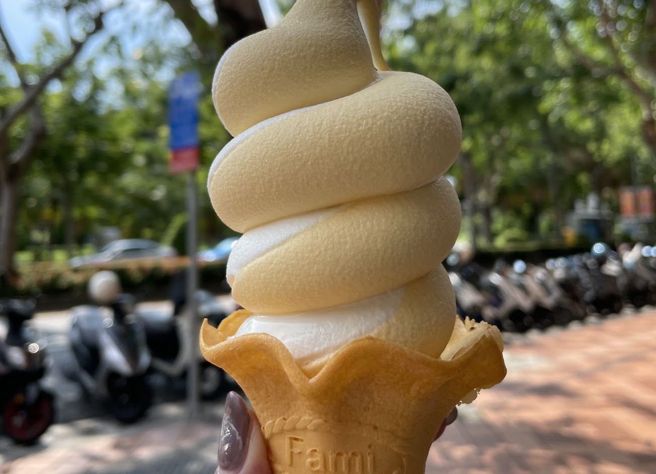 全家最近出了一種雙淇淋胖胖的圓滾滾的造型~只有限定幾間門市才有,最近也超多人Po的,喜歡這造型的可以前往嘗試,這間全家在實踐大學旁的有三種口味任你綜合,有西瓜&牛奶&西洋梨,於是就選擇了綜合西瓜的甜加上西洋梨酸的綜合霜淇淋,單舔一種口味比較吃的出味道,一起吃,西洋梨的酸會蓋過西瓜的甜吃不出西瓜口味,很特別~快找機會去吃吃看吧。